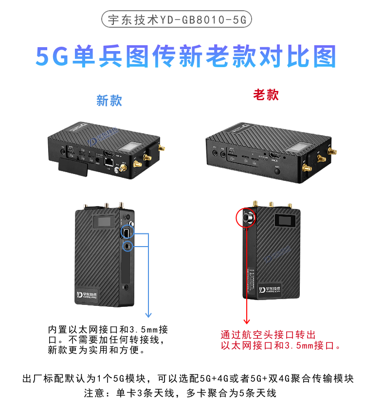 YD-GB8010-5G本款5G單兵圖傳產(chǎn)品為新研發(fā)的,具備不少于兩個(gè)SIM卡槽,同時(shí)支持不少于兩個(gè)不同運(yùn)營(yíng)商網(wǎng)絡(luò),專門針對(duì)自然災(zāi)害,國(guó)家消防救援,應(yīng)急通信指揮調(diào)度的新標(biāo)準(zhǔn)而開發(fā),我們的參數(shù)基本完全滿足各種需求,各地方不一樣分單卡和多卡,詳細(xì)資料具體可以聯(lián)系公司業(yè)務(wù)。